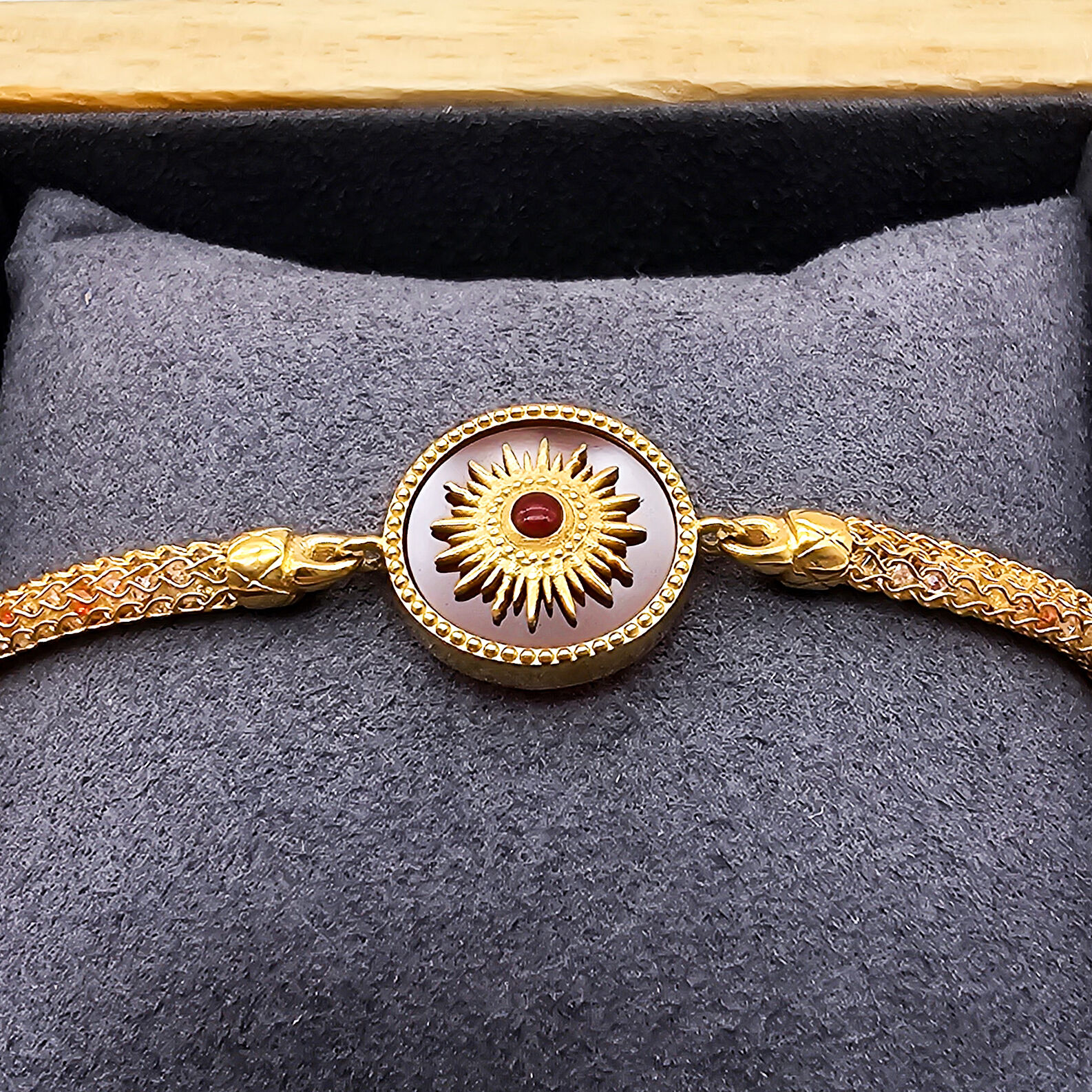 Classic Vintage Trendy Gold Plated Adjustable Chain Zircon Unisex Charm Sunflower Bangle