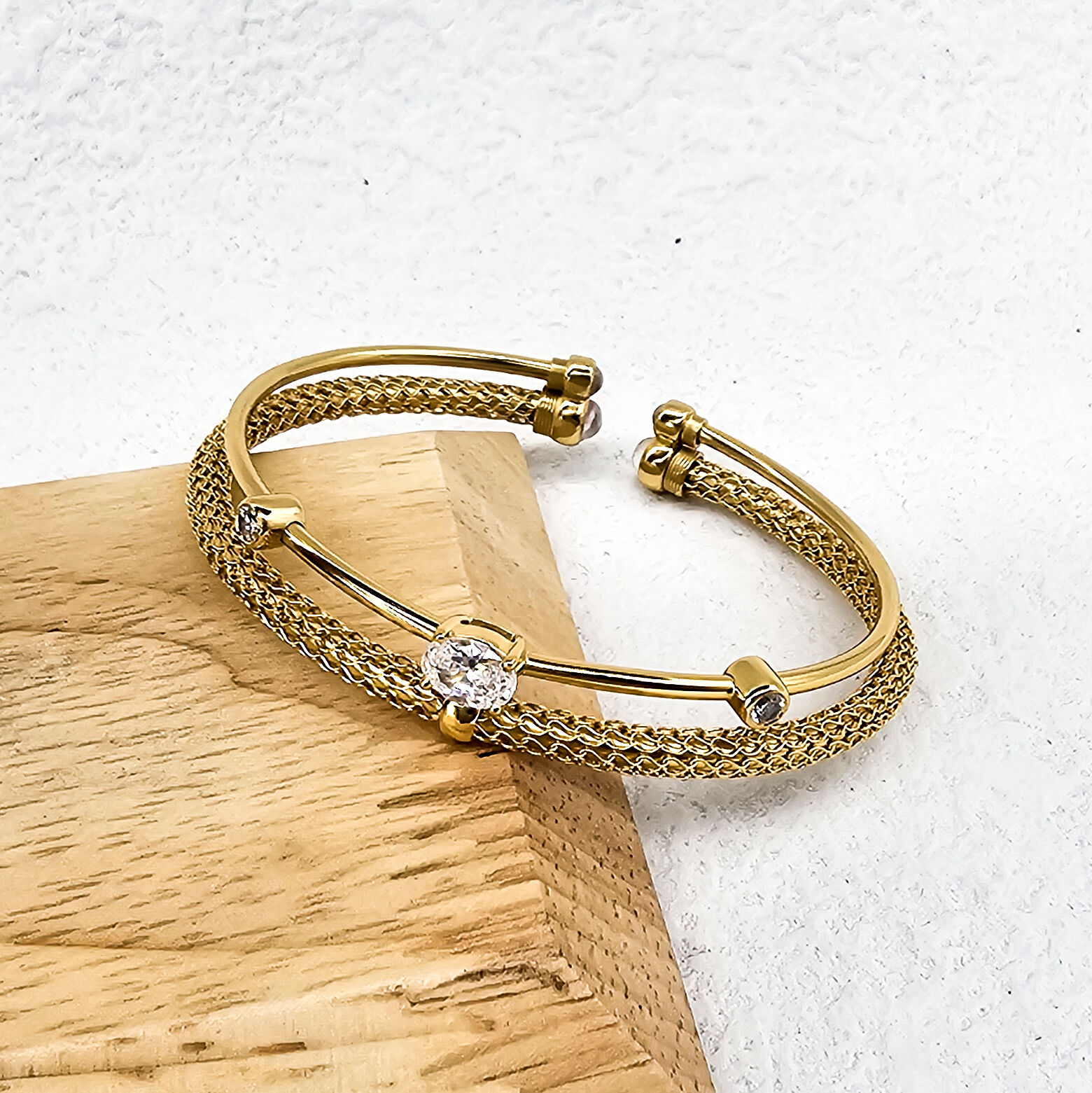 Модный браслет-шарм с двойным слоем, позолоченный 18K золотом, с цирконием, эффектный открытый браслет-манжета с комбинированной текстурой для женщин